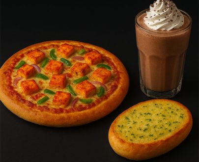 Paneer Tikka Pizza Regular + Garlic Bread + Chocolate Shake